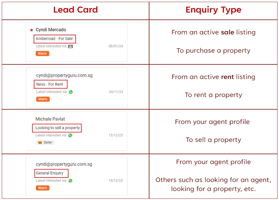 Rest assured that property seekers are informed that their details are shared with agents when they click on the contact buttons, and that we are constantly working to improve your experience. - What are the different types of leads I can receive?