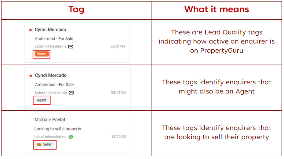 All leads that you receive from PropertyGuru are viewable on your Lead Management page.