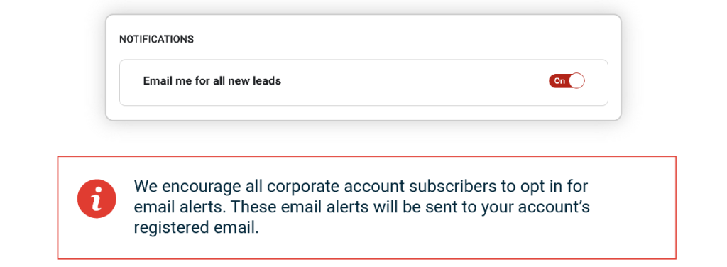 Your lead alerts will also allow you to connect with your potential clients, or to view more details about them on Lead Management – all with one click.